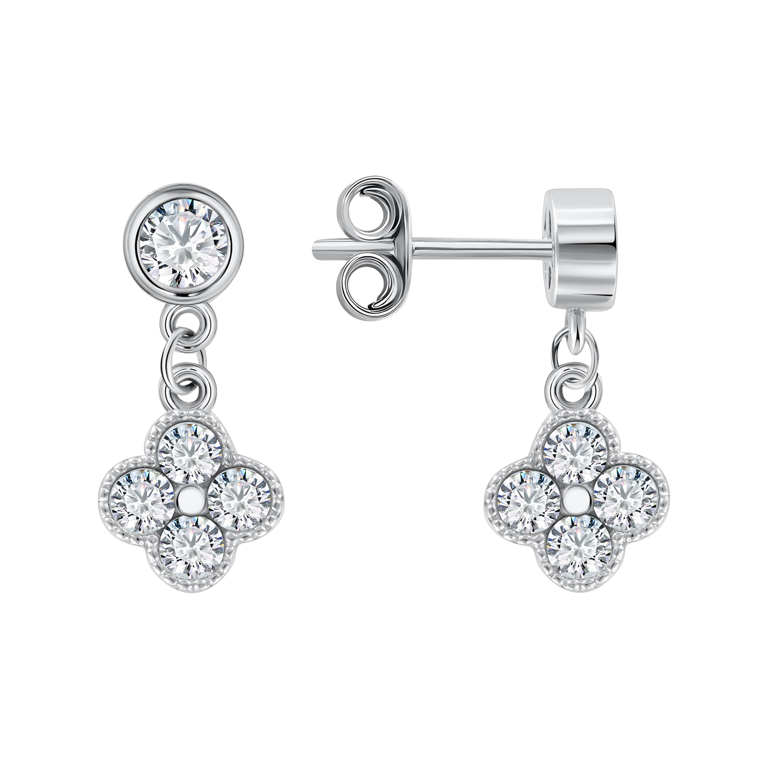 Wunderschöne Ohrstecker aus 925er Silber mit Zirkonia. Das Design mit einem beweglichen Blütenelement (Größe ca. 7x7 mm) aus vier Steinen verleiht dem Schmuckstück eine romantische und feminine Ausstrahlung. Mit einer Höhe von ca. 18 mm setzen sie einen zarten, aber dennoch auffälligen Akzent. Das Funkeln der Zirkonia fängt das Licht wunderschön ein und unterstreicht die Eleganz und den Stil. Perfekt für den Alltag und besondere Anlässe.