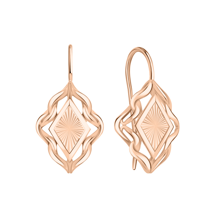 Earrings crafted in 14k gold featuring a radiant diamond-shaped centerpiece and openwork frame — a bold yet graceful design.