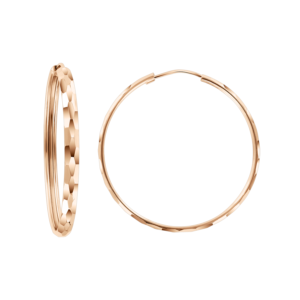 Attractive creole earrings crafted from 14K red gold (585) with an elegant faceted surface that beautifully reflects light, giving the earrings a special brilliance.