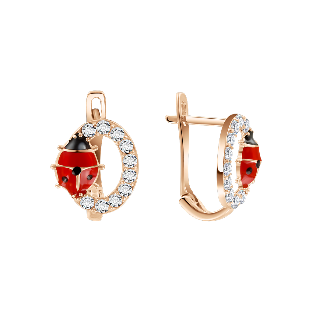 Beautiful children's earrings, red gold 585, with zirconia and enamel, height approx.11 mm