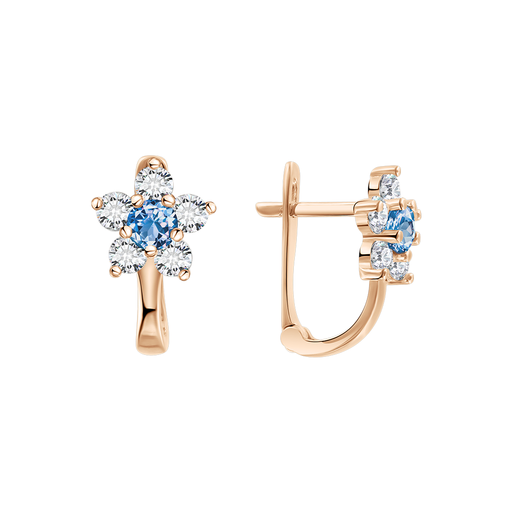 Charming children's earrings, red gold 585, with zirconia, height approx. 11 mm.