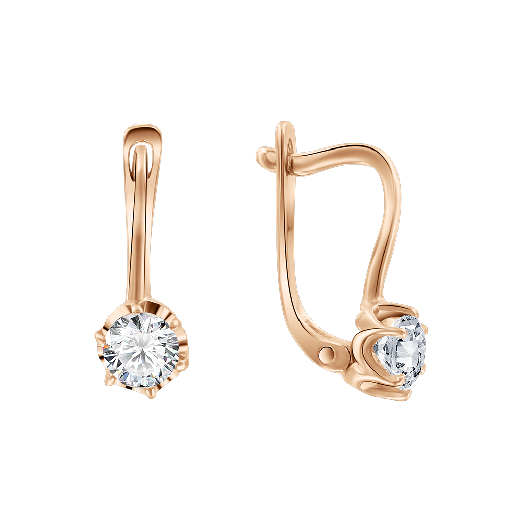 Attractive children's earrings, red gold 585, with zirconia, height approx. 12 mm.
