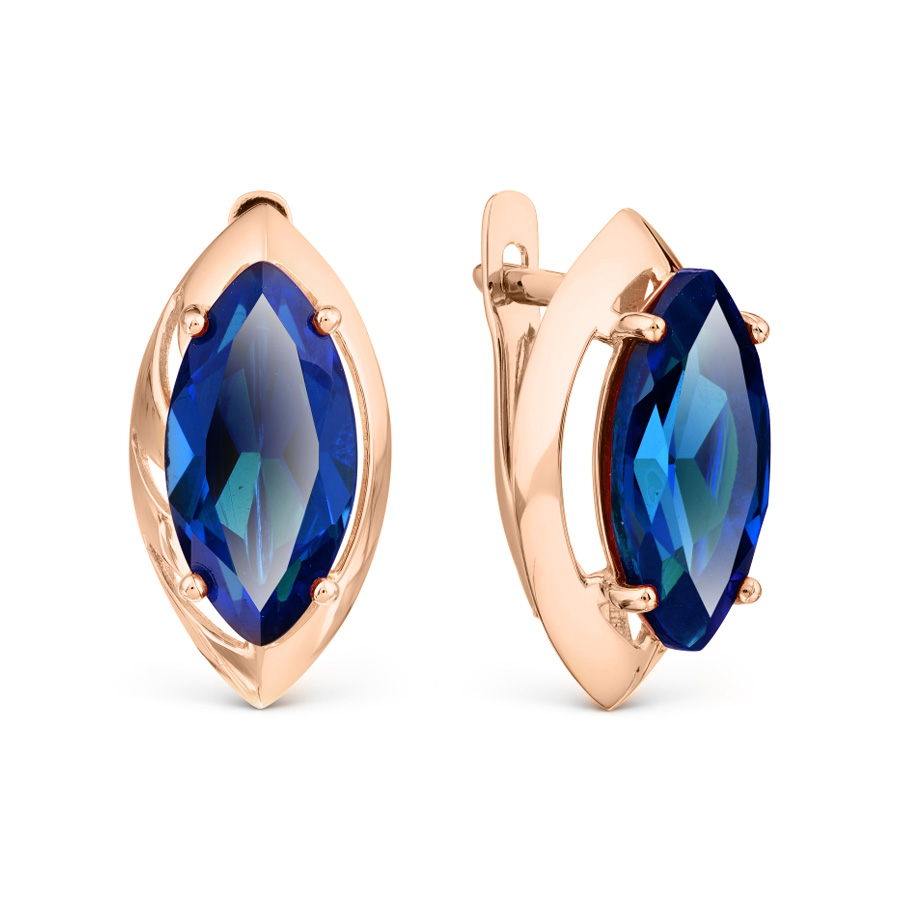 Ohrhänger, Russisches Rotgold 585, mit Saphir, Größe ca. 15x8 mm, Höhe ca. 20 mm