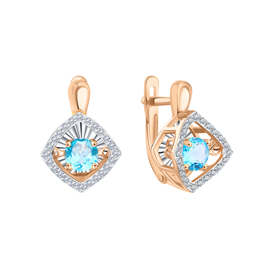 Wunderbarer Ohrhänger, Russisches Rotgold 585, mit Topas und Zirkonia, Durchmesser Stein ca. 5-6 mm, Größe Kaste ca. 12*12 mm, Höhe ca. 5-8 mm