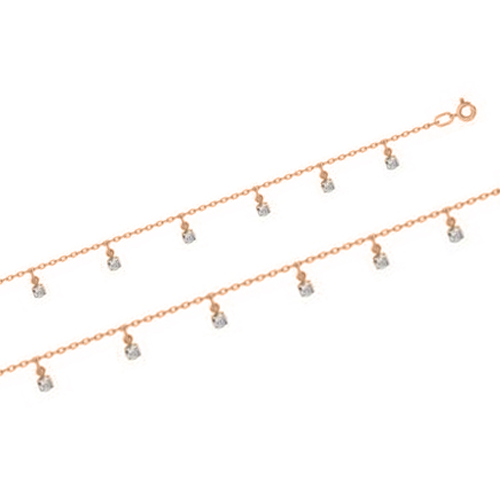Lovely anklet in red gold 585, with zirconia, at 24 cm - weight approx. 2,13 gr.