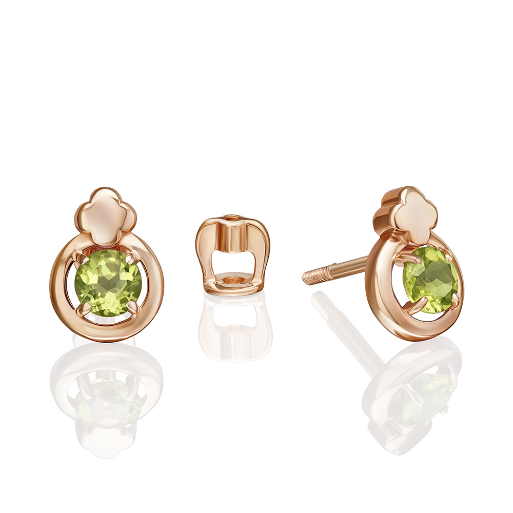 Light, fresh, and full of natural charm — these stud earrings bring the glow of summer into your everyday look. The soft green hue of the peridot perfectly complements the warm tone of 14K red gold. A delicate clover-shaped detail symbolizes good luck and harmony.