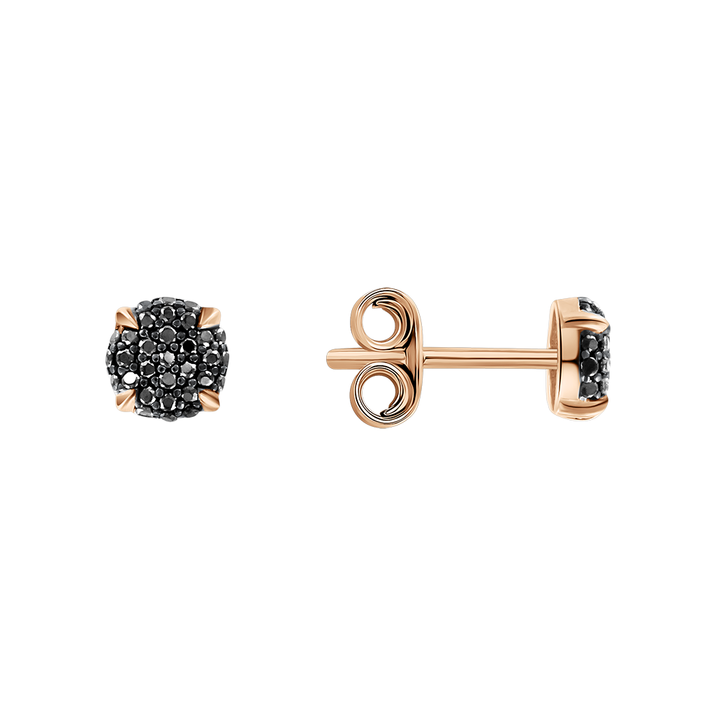 Elegant stud earrings crafted from 585 Russian red gold, adorned with sparkling black cubic zirconia.