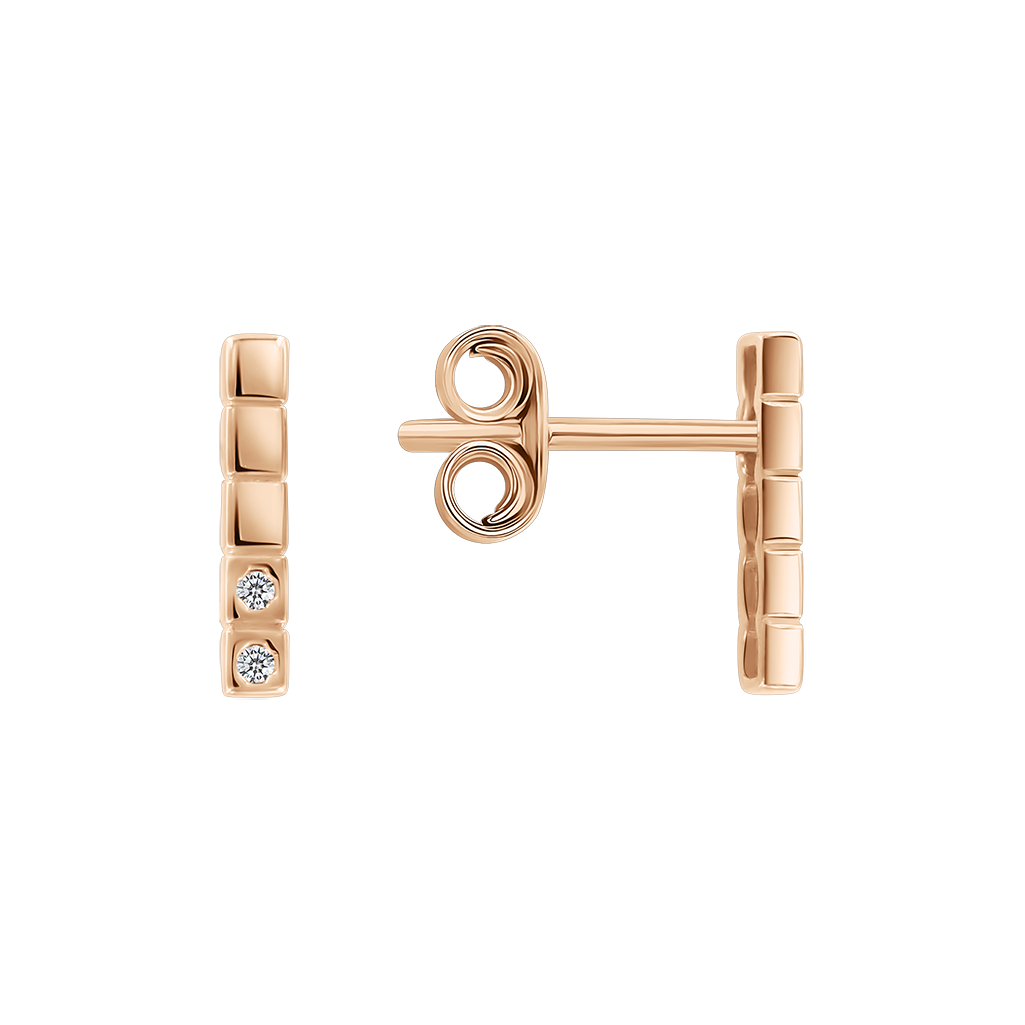 These delicate stud earrings (height approx. 10 mm) feature a refined geometric design. The warm tone of red gold beautifully enhances the sparkle of the zirconia stones, combining modern elegance with classic charm.