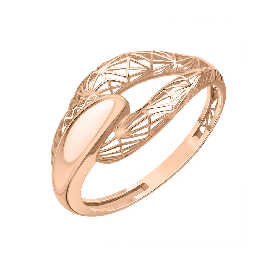 A distinctive ring crafted from 14k gold, featuring a delicate openwork geometric pattern — a bold blend of structure and elegance.