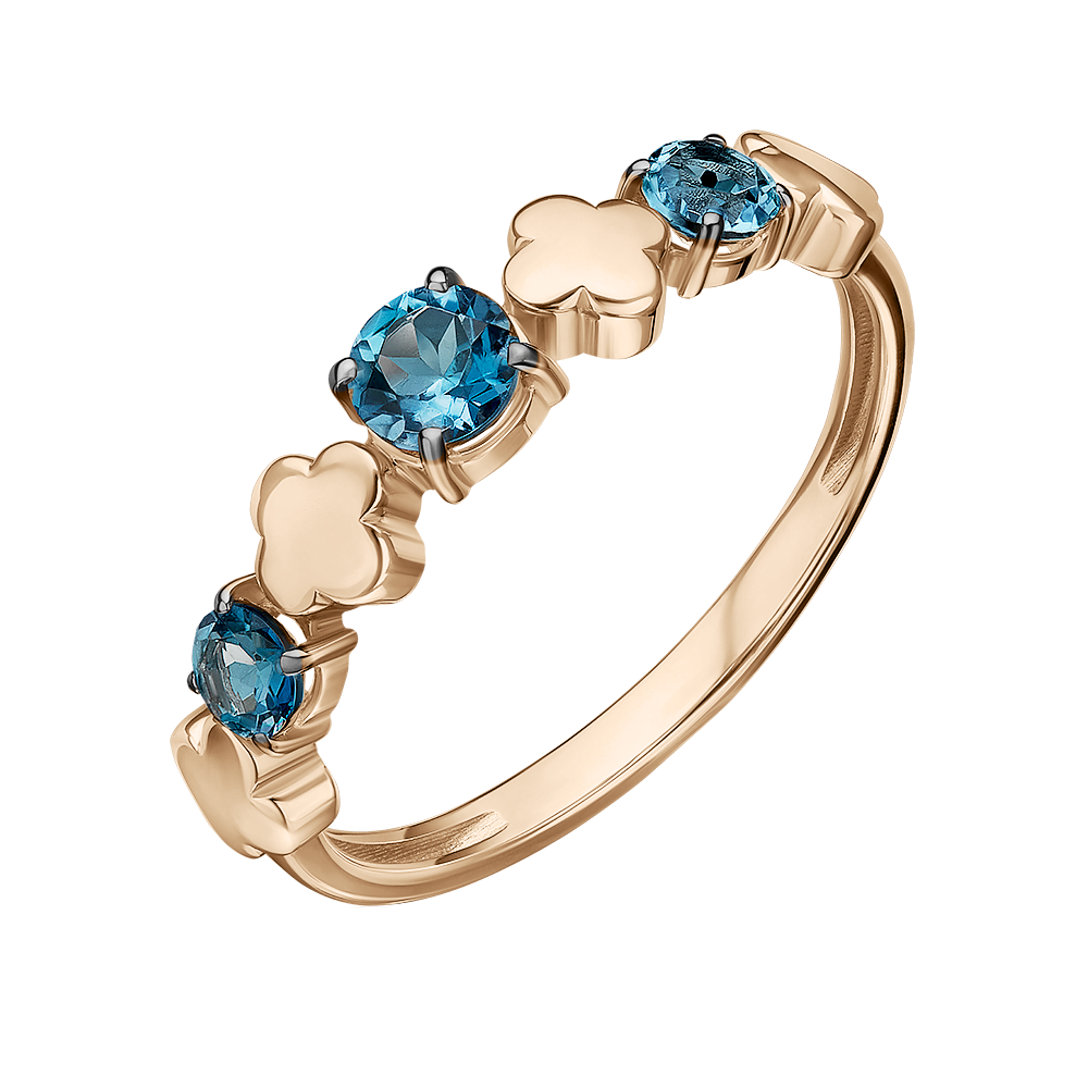Alternating blue topaz stones and petal-shaped golden accents create a balanced, graceful design.