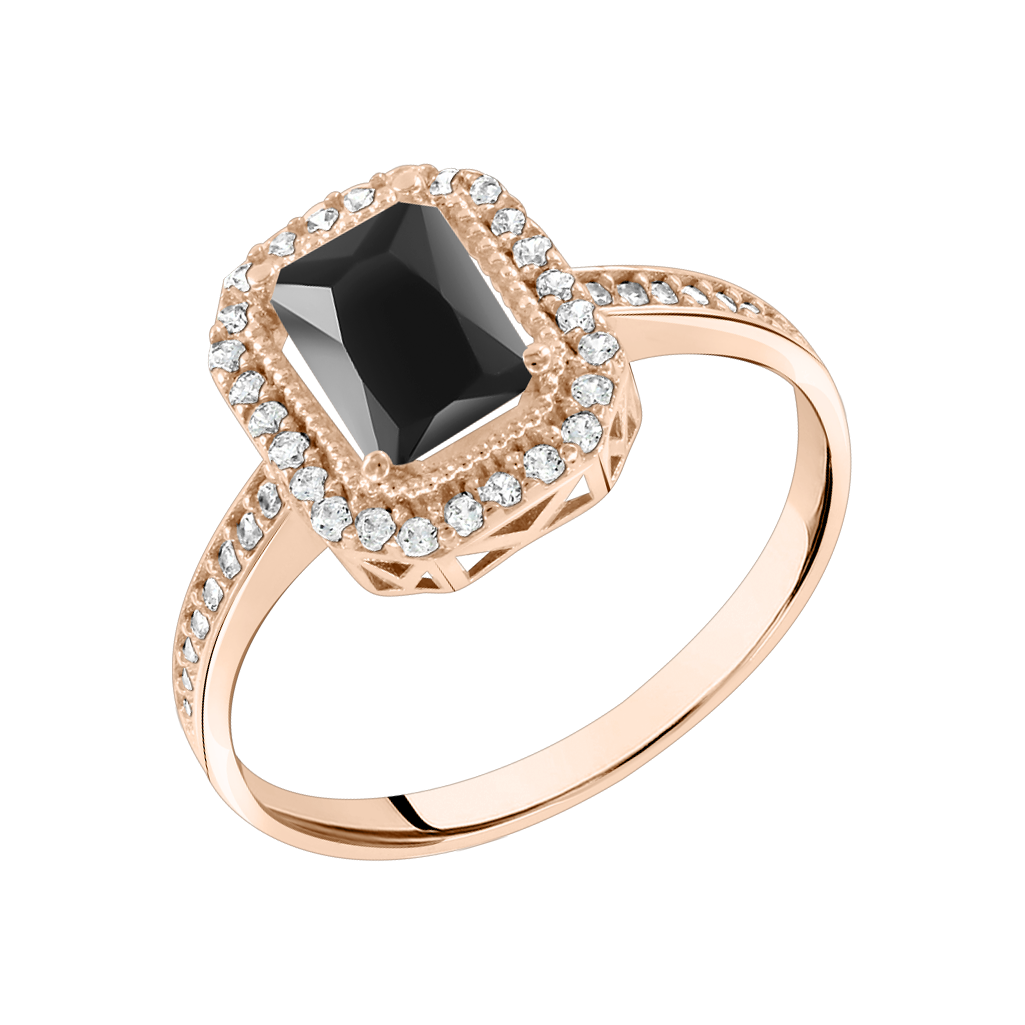 Women's ring with zirconia, Russian red gold 585, decorative part size approx. 11х9 mm
