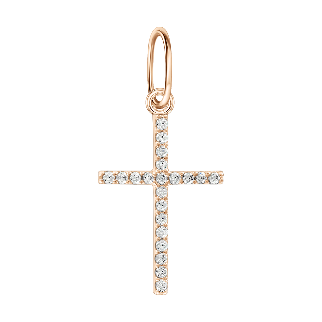 Wonderful pendant cross, Russian red gold 585, with zirconia, height approx. 24 mm