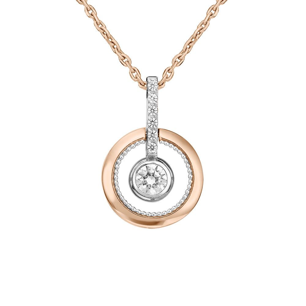 Pendant, 585 Russian red/white gold, with zirconia, diameter of the decorative part approx. 13 mm, height approx. 20 mm