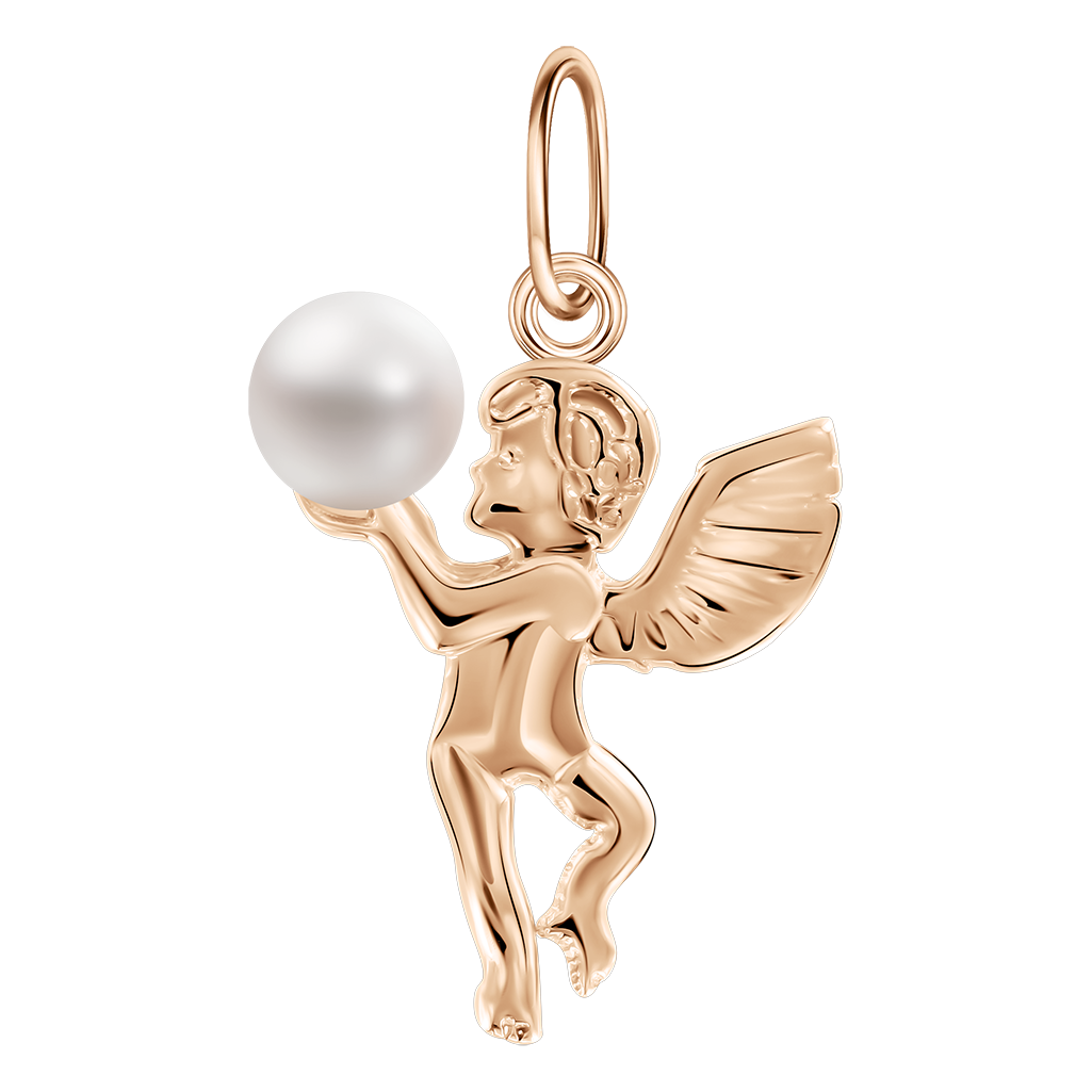 Lovely pendant - Angel, red gold 585, with natural pearl, height about 27 mm
