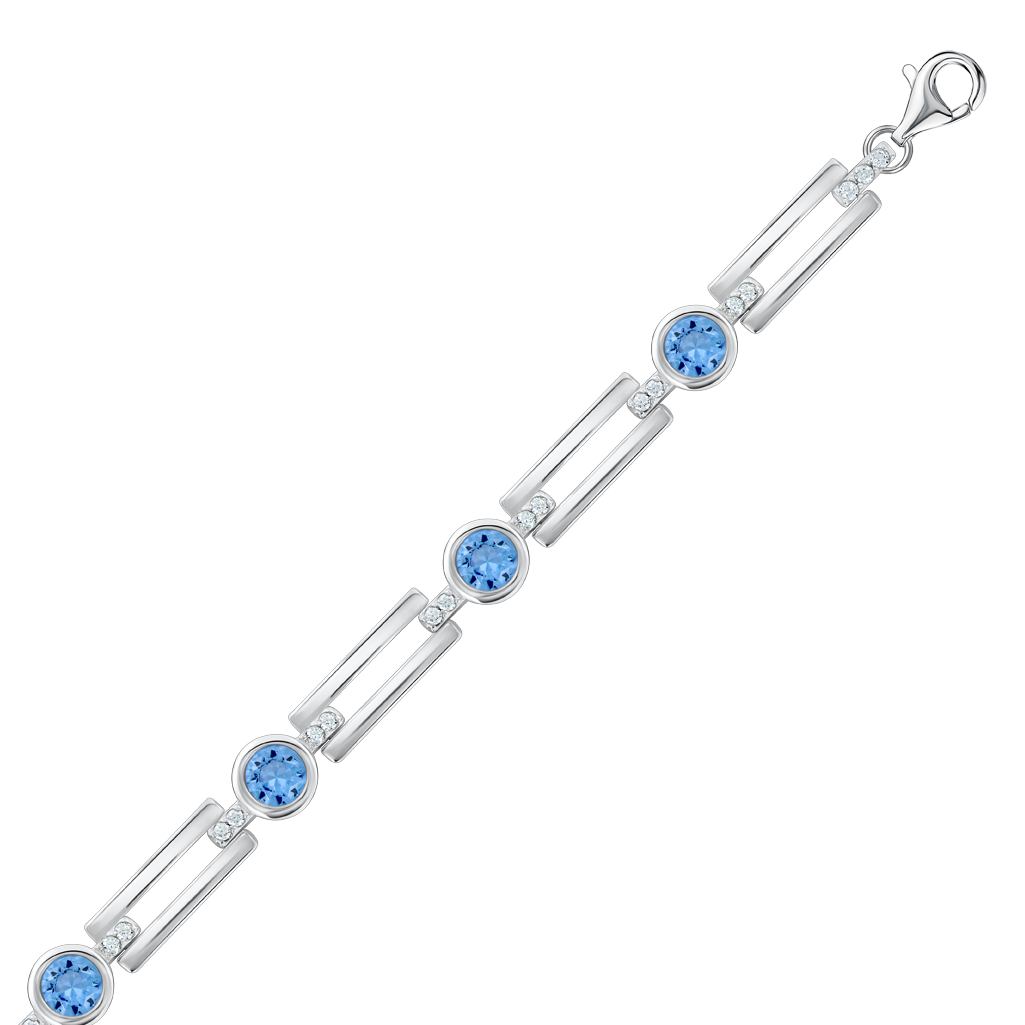 Brilliant sky-blue cubic zirconia are accented by sparkling white stones, creating a striking contrast.
