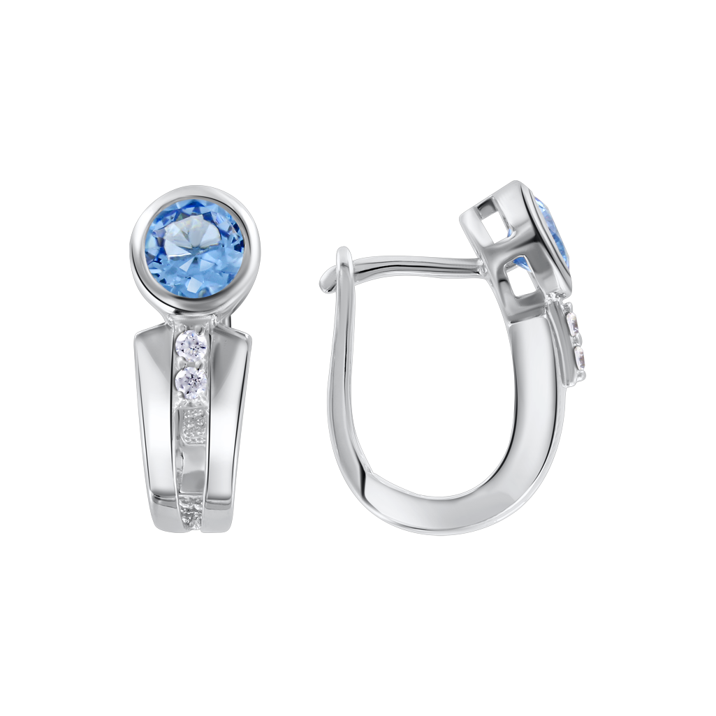 Crafted from 925 sterling silver, these elegant earrings feature a radiant sky-blue cubic zirconia as the centerpiece.