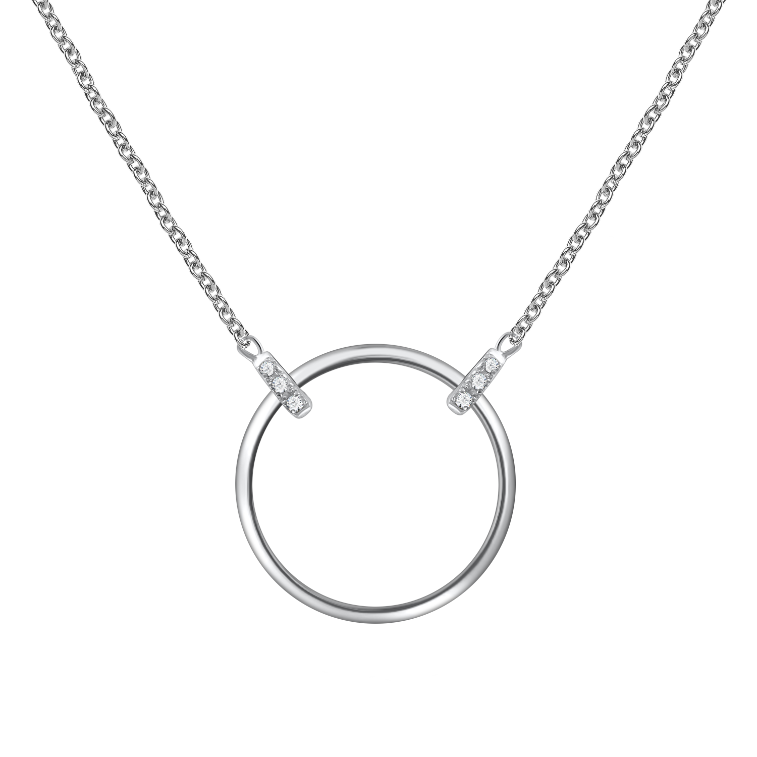 Stylish necklace made of 925 sterling silver with cubic zirconia, the chain length is approx. 45 cm, and the diameter of the hanging ring is approx. 15 mm