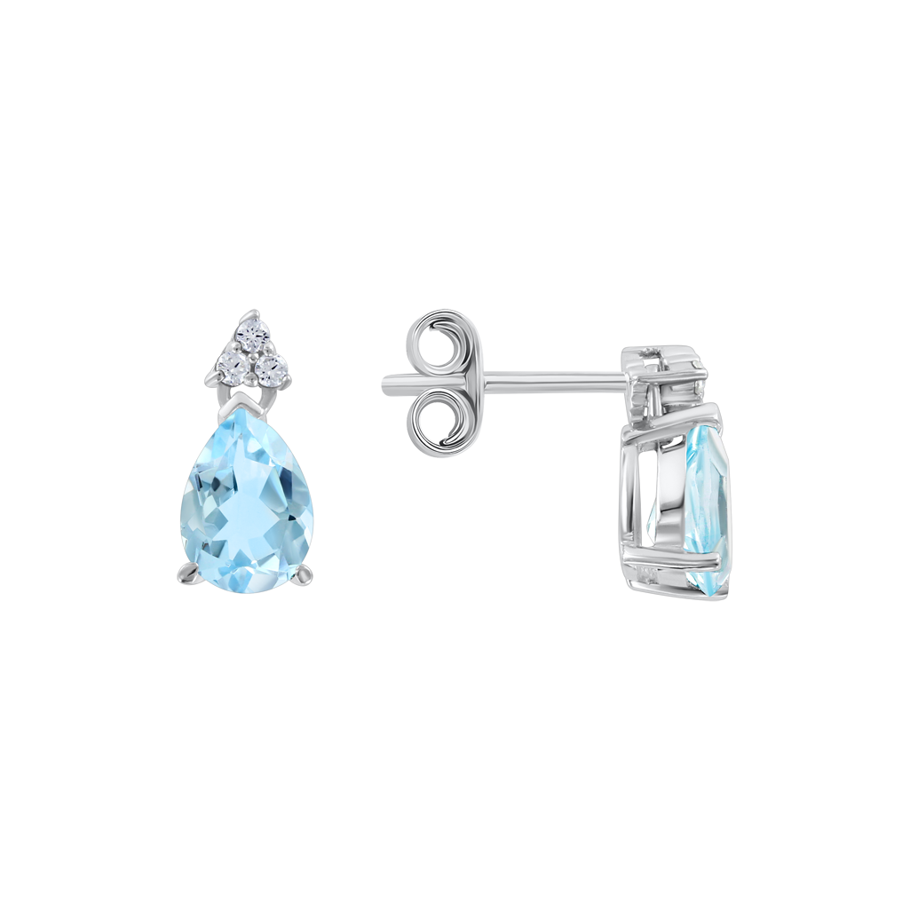The sky-blue drop-shaped sky topaz shines with clarity and lightness, while sparkling cubic zirconia accentuate its brilliance.